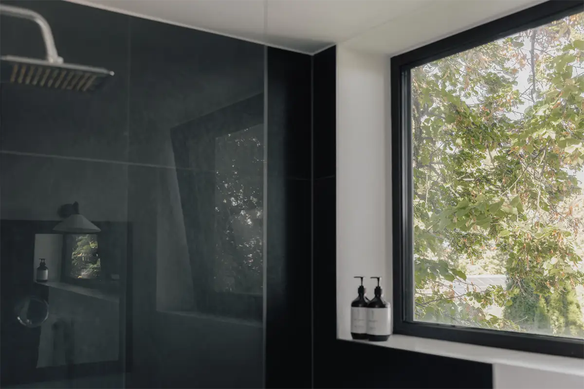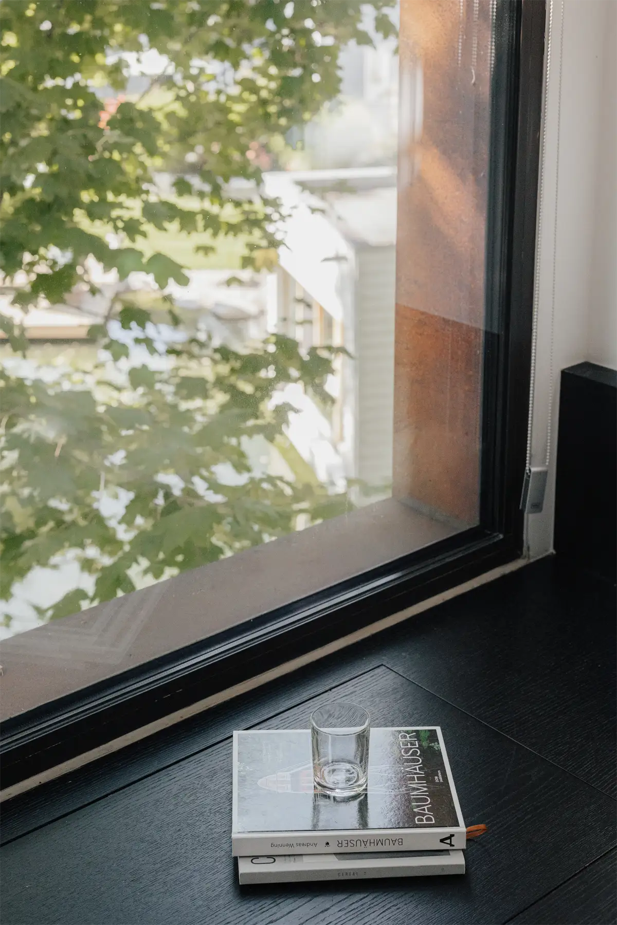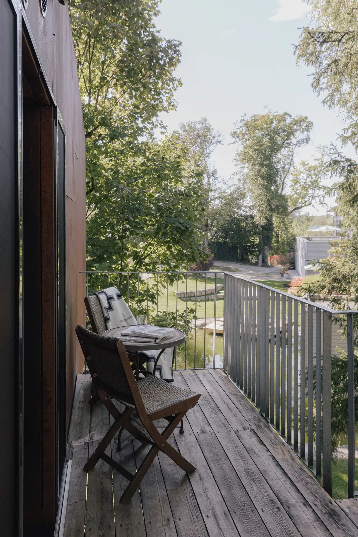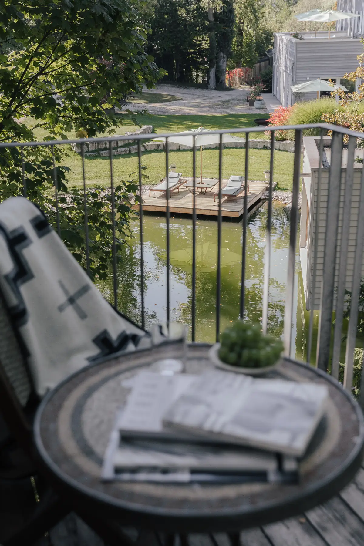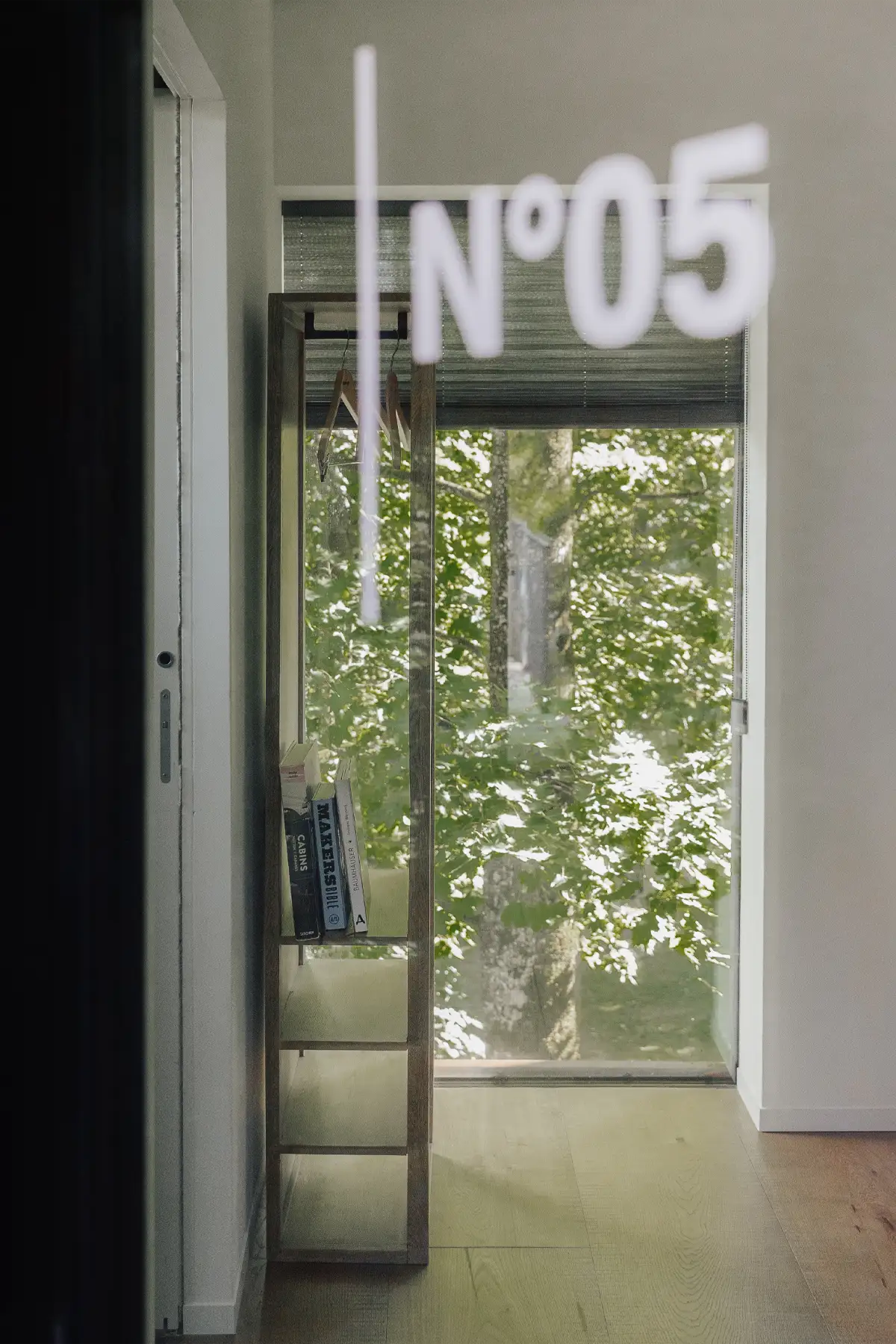 Durch das große Panoramafenster und dem kleinen Balkon habt Ihr den besten Blick auf die Baumwipfel und seid der